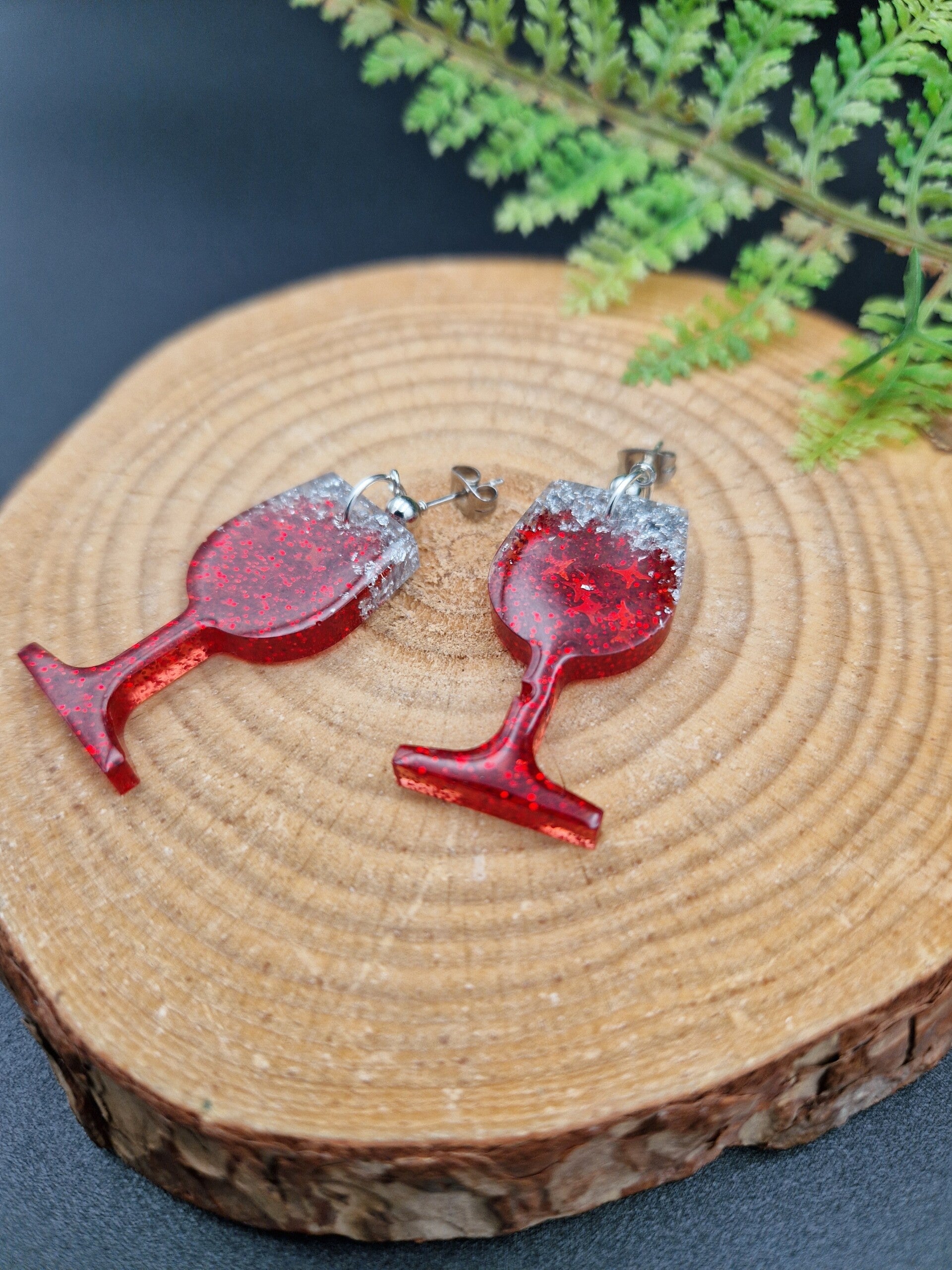 Boucles d'oreilles en forme de fleur en résine UV avec paillettes.