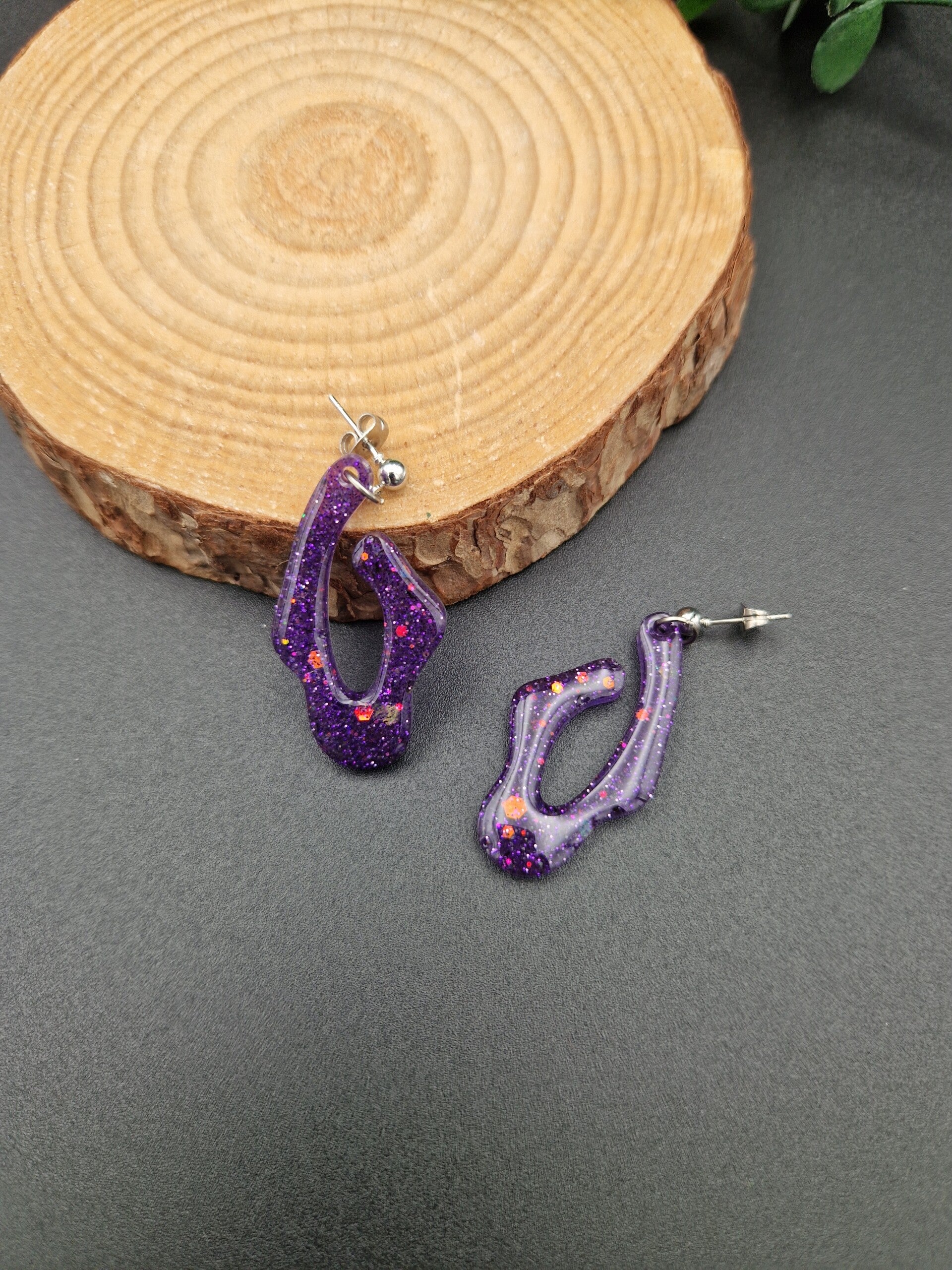 Boucles d'oreilles en forme de fleur en résine UV avec paillettes.